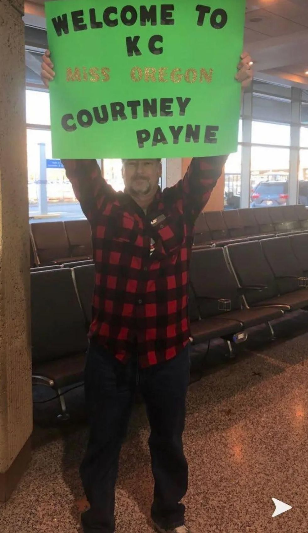 Courtney's Dad, Doug, told People that when he did this Miss Oregon sign, it "wasn't a lie because she is a miss and from Oregon." What a guy. Just a real, perfect dad. But he didn't stop there. The next time Courtney came home, Dad was there, this time dressed to the nines and holding a sign that said, "KC welcomes Miranda Lambert." This guy's creativity is off the charts.