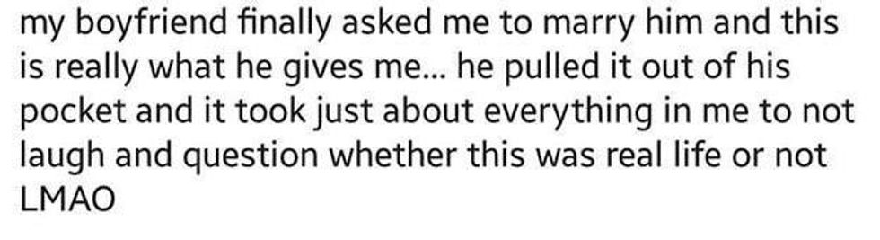 Sadly, that's what this young woman received when her boyfriend proposed to her.
