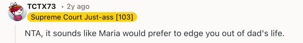 When her father returned and learned what had happened, a heated argument ensued between him and Maria. Maria refused to speak to either of them for the remaining days of her stepdaughter's visit. Shortly after, Maria's children started messaging the woman, accusing her of treating their mother like a guest.